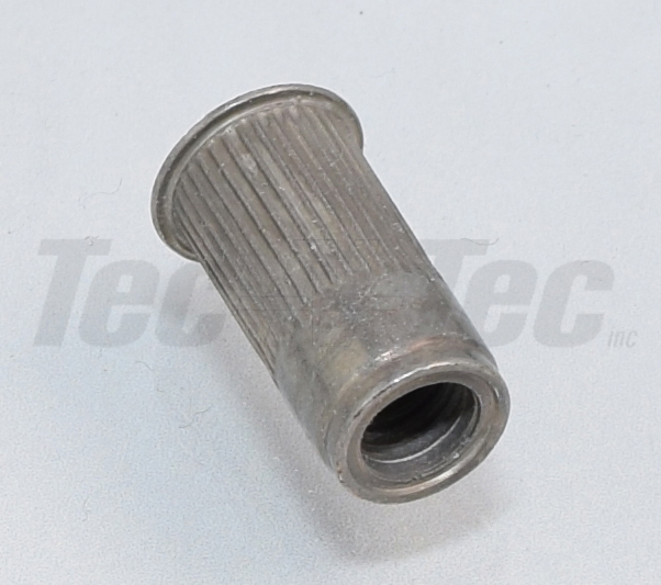 Écrou inséré en laiton, brass AKB2-1032-130, mais plaqué au cadmium mat, donc pas de couleur laiton. L'écrou ( rivet nuts ) AVK modèle AK diffère du modèle AL par son collet réduit, ce qui permet une installation presqu'à ras sans les inconvénients de la préparation spéciale requise pour un trou fraisé.