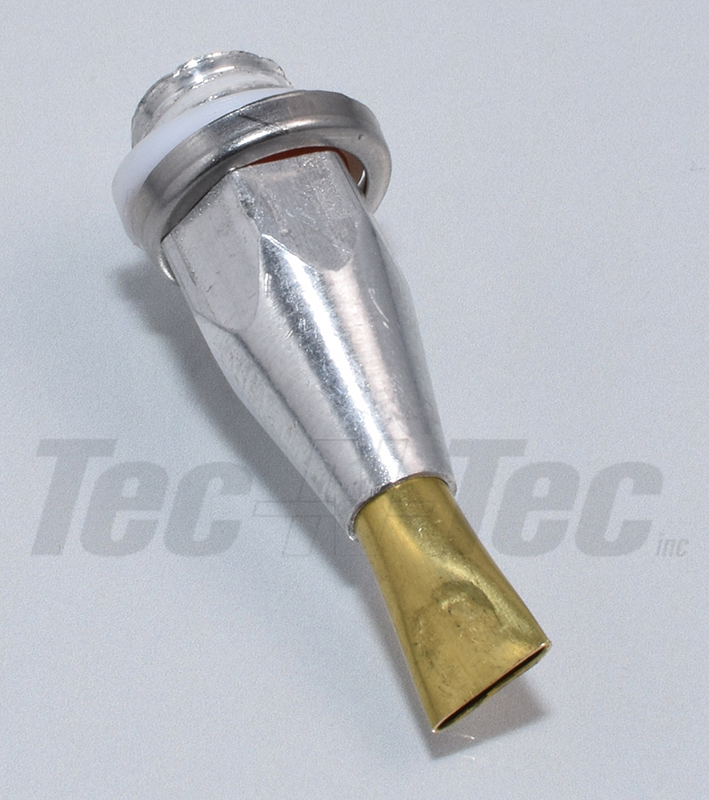 Embout (tips) compatible avec Surebonder HE-750, DT-750, Pro2-100, Pro2-100L, Pro2-220, Pro2-220HT, Pro450, Pro600, Pro-120, Pro2-60, Hybrid-120. Bostik TG760 et Thermostix PT-360, PT-350, K-3350. Embout pour pistolet à colle chaude, plat (Communément appelé "Bec de canard"), largeur entre 7 et 10mm. Longueur total 45mm approximativement. Bille en acier anti-fuites intégrée.